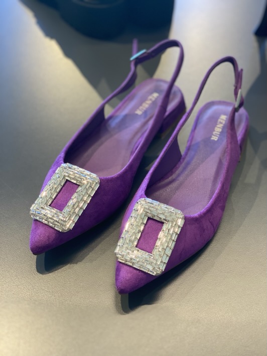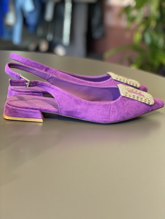 Bellissimo color viola freddo scamosciato, elegante ma stilosa e originale da abbinare al jeans o pantalone a sigaretta.