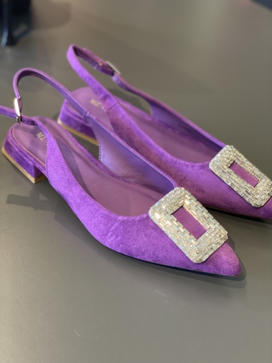 Bellissimo color viola freddo scamosciato, elegante ma stilosa e originale da abbinare al jeans o pantalone a sigaretta.