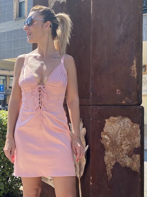 Vestitino tubino a corsetto, con spallina larga, in raso lucido.