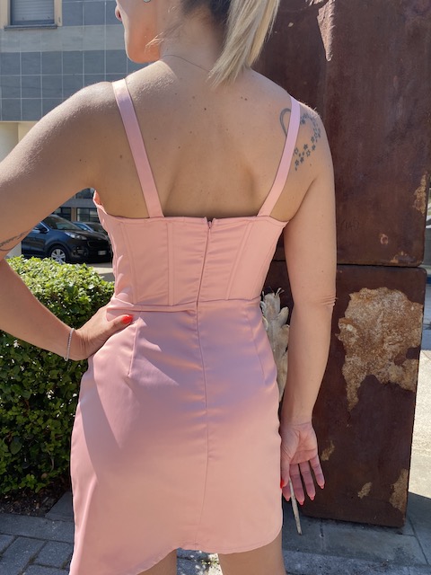 Vestitino tubino a corsetto, con spallina larga, in raso lucido.