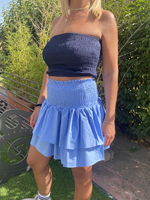 Gonna corta a balze con elastico in vita.