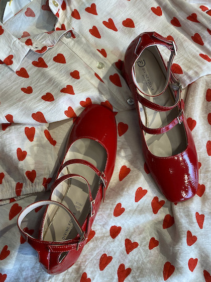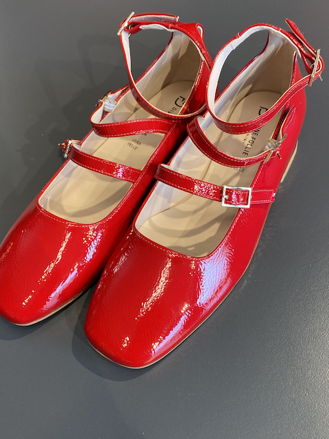 Ballerina Maryjane in vera pelle lucida di colore rosso.