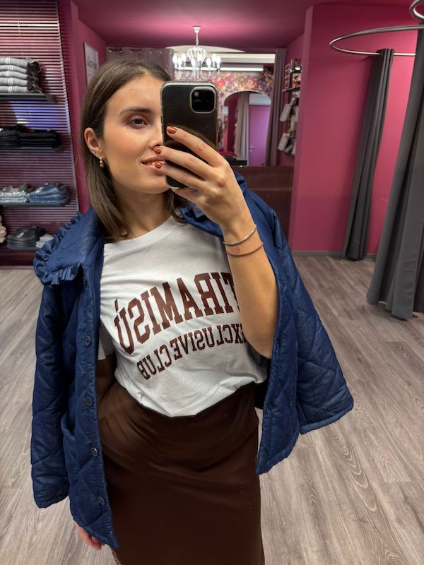 T-shirt 100% cotone taglio classico, morbida e lunga.